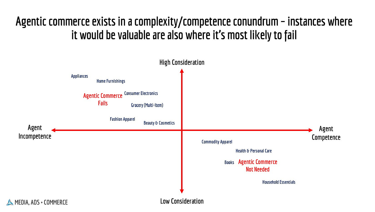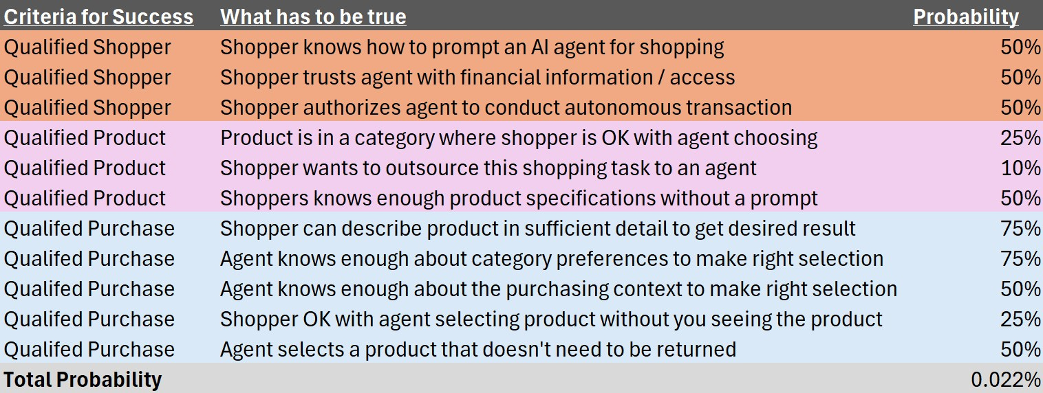 การที่เอเจนต์จะซื้อของแทนผู้ใช้ได้ต้องมีเงื่อนไขจำนวนมากพร้อมกัน เช่น ความเชื่อใจ การอนุญาตให้ใช้เงิน และการให้ข้อมูลบริบทที่ครบถ้วน โอกาสที่ทุกอย่างจะเป็นจริงพร้อมกันมีน้อยมาก